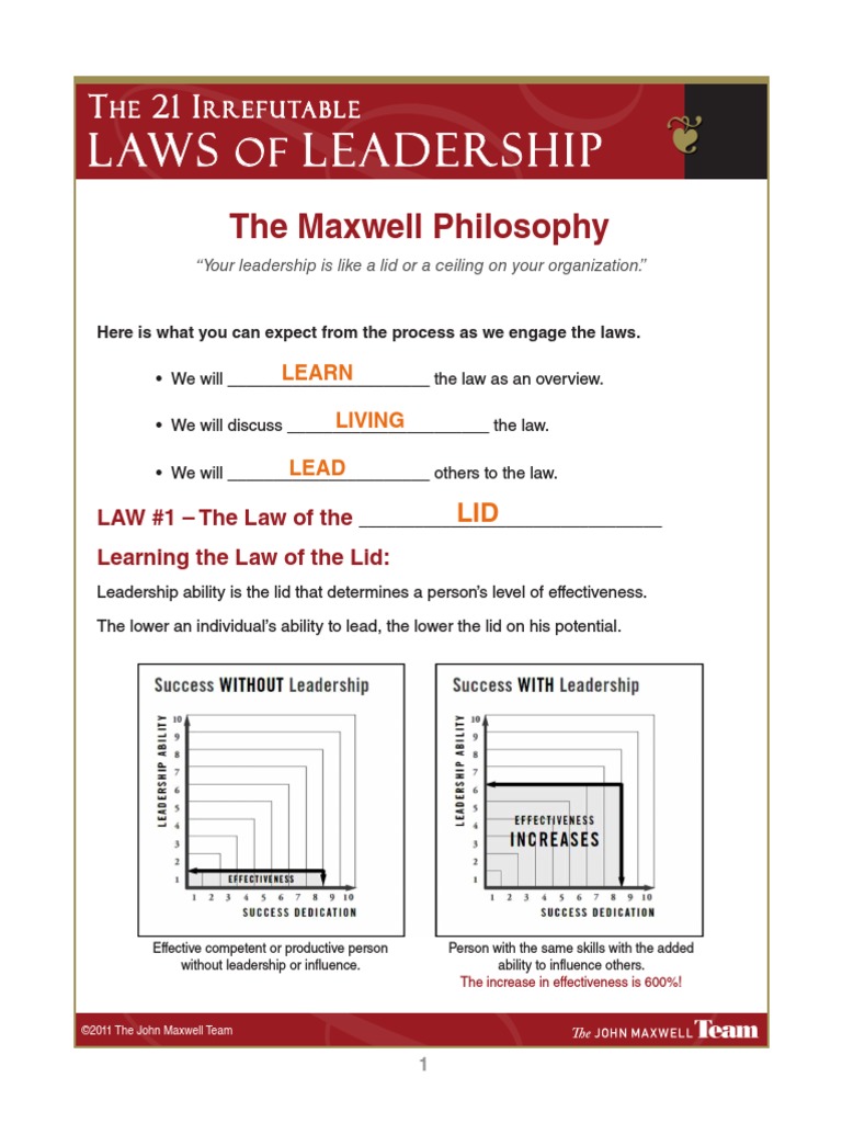 Learning the 21 irrefutable laws of leadership : You and i will go through them and embark on a journey of. The lower an individual’s ability to lead, the lower the lid on his potential.” this